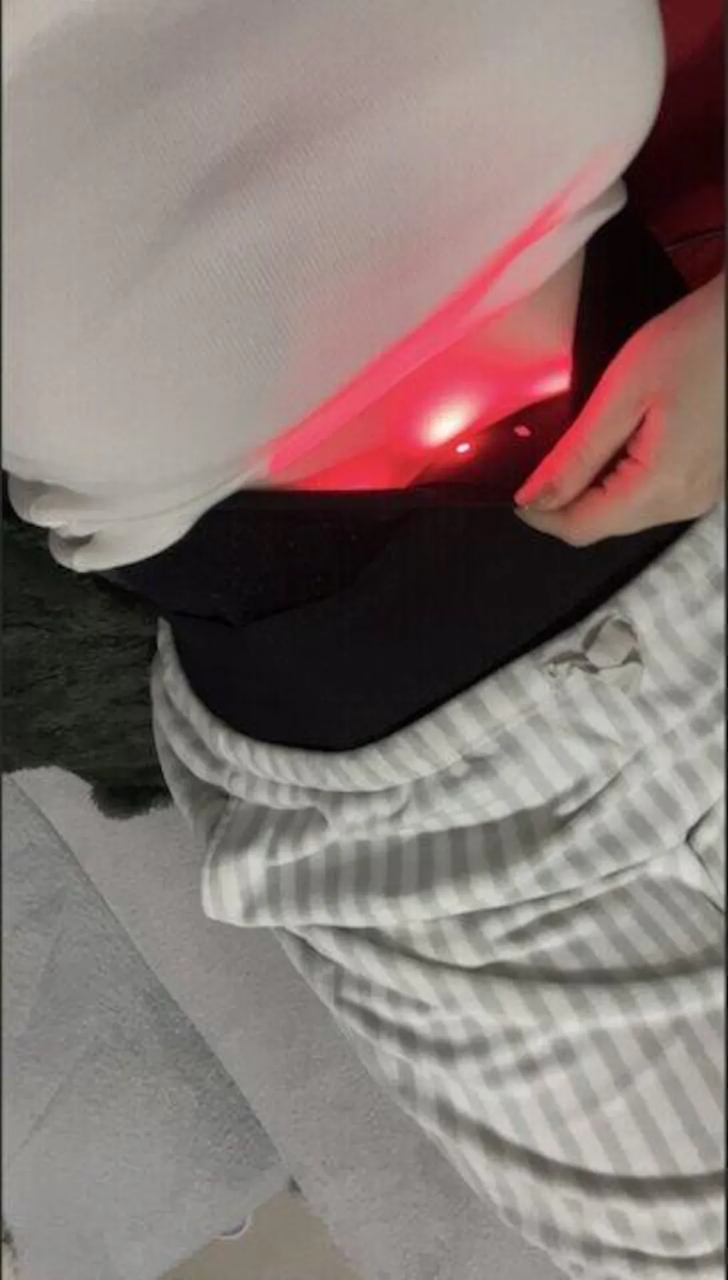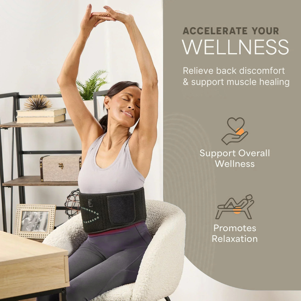 The belt includes adjustable pulsed-light therapy, which delivers light in controlled intervals to help the body respond more efficiently.
